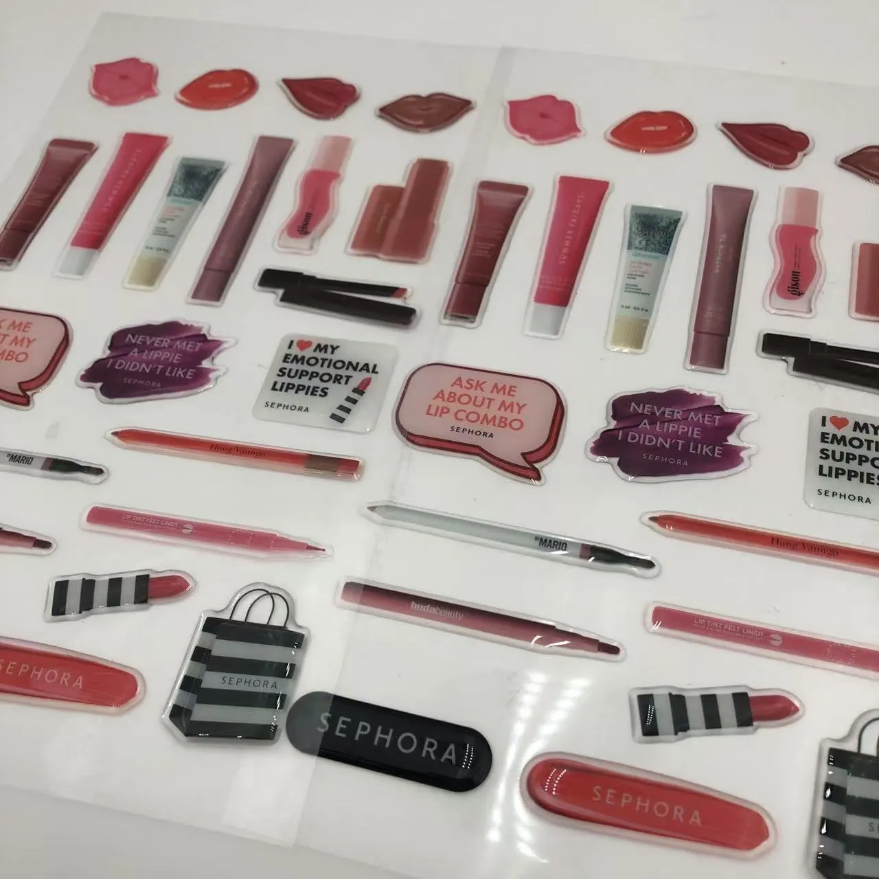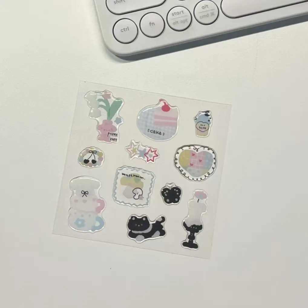 I motsetning til vanlige flate klistremerker, er disse dekalene vanntette, ripebestandige og falmebestandige. Laget av miljøvennlige materialer og støttet med avtagbart lim, gir de langvarig klebrighet på overflater som skrivesaker, leker, kopper og vegger, og kan skrelles av uten å etterlate rester eller skadelige gjenstander.