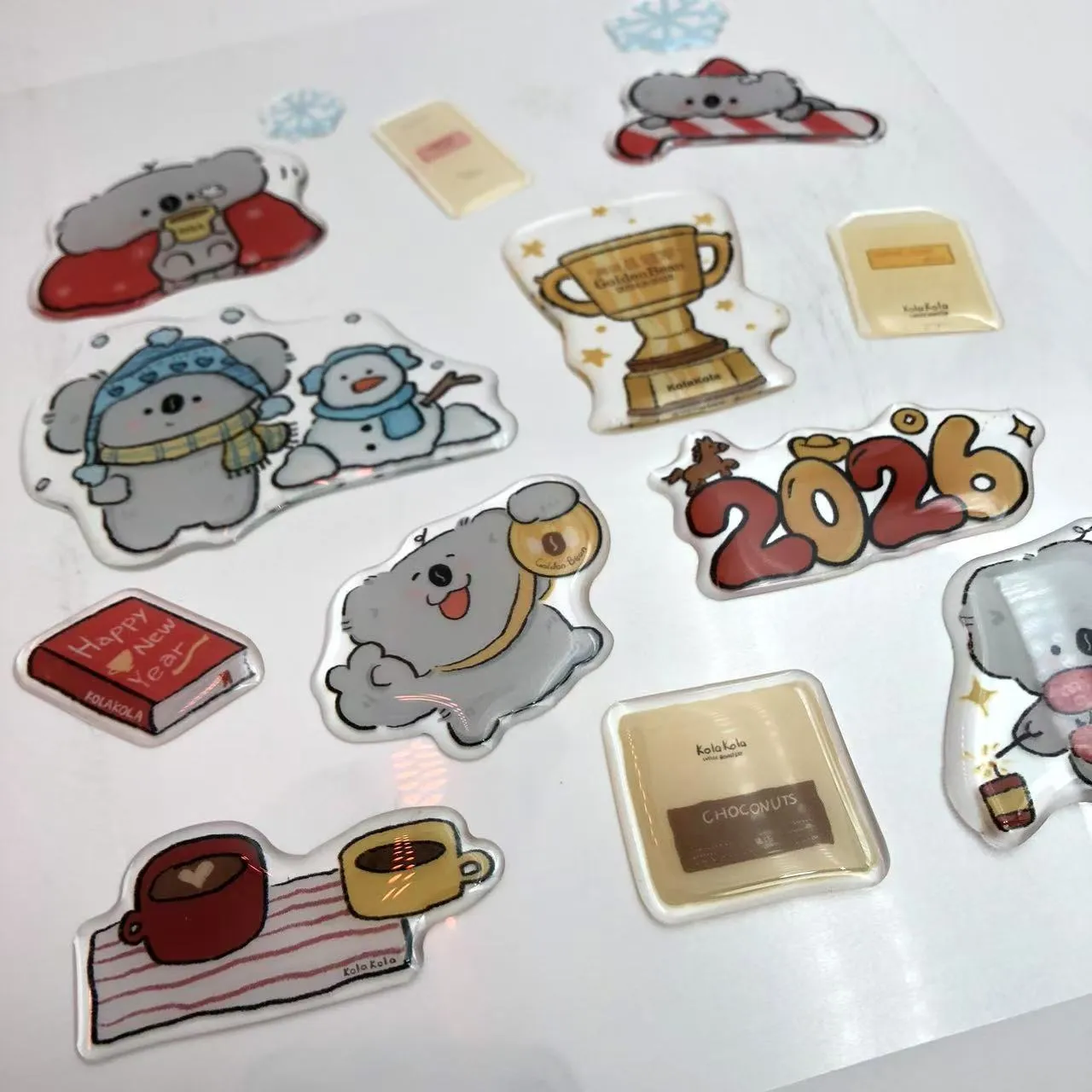 3D tegneserie epoksyharpiks-klistremerkerer tilpassede 3D-dekaler med tegneserie-temadesign. Hvert klistremerke er belagt med et lag med høygjennomsiktig epoksyharpiks, som herdes gjennom en drypplimprosess for å skape en fyldig, glatt og elastisk opphøyet tekstur.