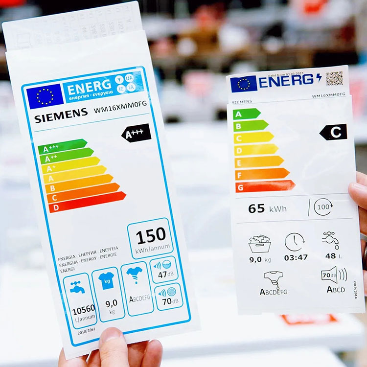 Produsenter er ofte lovpålagt å vise energieffektivitetsetiketter på apparatene sine for å overholde energispareforskriftene.