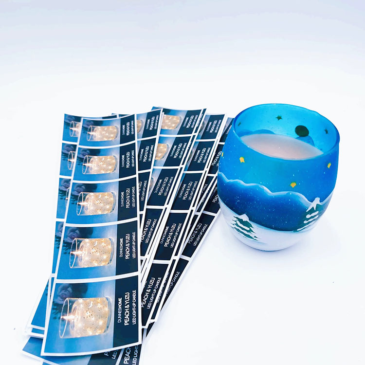 PET materiale:Polyesterfilm (PET) er et annet ofte brukt materiale forstearinlys etiketter. Den har egenskapene til høy gjennomsiktighet, god seighet, vannbestandighet og sterk rivebestandighet.