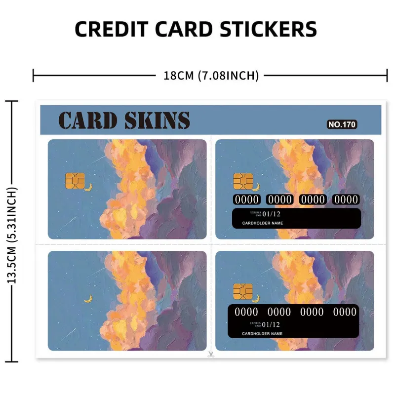 Kredittkortklistremerkerer personaliserte dekorative klistremerker som kan sitte fast på overflaten av kredittkort. De er laget av ultratynne og miljøvennlige materialer og påvirker ikke normal sveipe av kortet eller lesingen av brikken. Det gjør det ikke bare i stand til å vise frem en unik stil, men noen produkter har også praktiske funksjoner som anti-sveip (RFID-blokkering), og samtidig støttelogo-tilpasning. Det er et produkt som kombinerer skjønnhet og praktisk.
