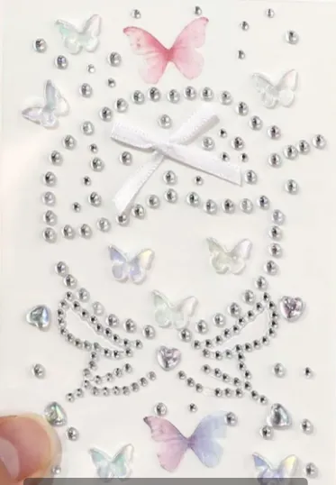 Dette diamantsminkeklistremerket er et kreativt skjønnhetstilbehør designet av Jojo Pack Stickers spesielt for skjønnhetsentusiaster, scenesminkeartister og festivalsminke. Laget av miljøvennlige materialer av høy kvalitet, kombinerer den moteestetikk med praktisk design, noe som gjør det mulig å skape et raffinert og iøynefallende makeup-utseende.