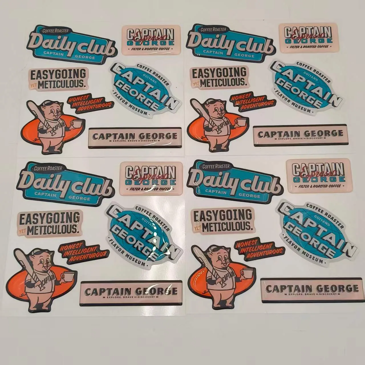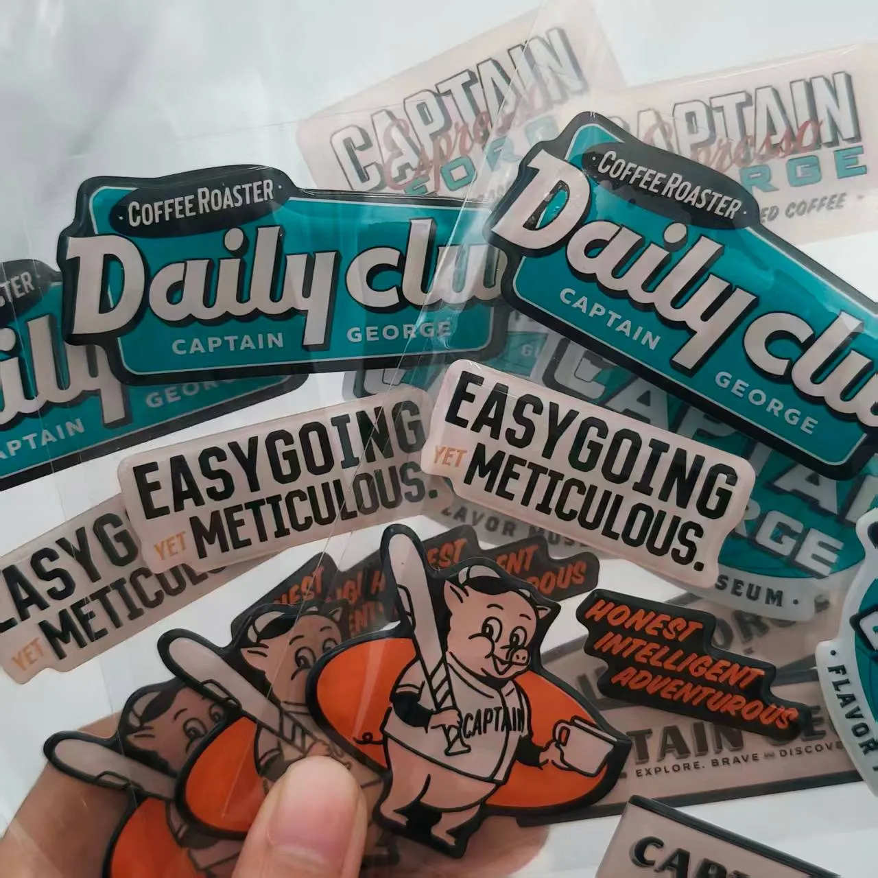 3D: Takket være det klare epoksyharpikslaget påført over det trykte designet, har disse klistremerkene et hevet, tredimensjonalt utseende. Dette gir en taktil og visuell dybde som flate klistremerker rett og slett ikke kan matche, noe som gjør dem mer slående med et blikk.
