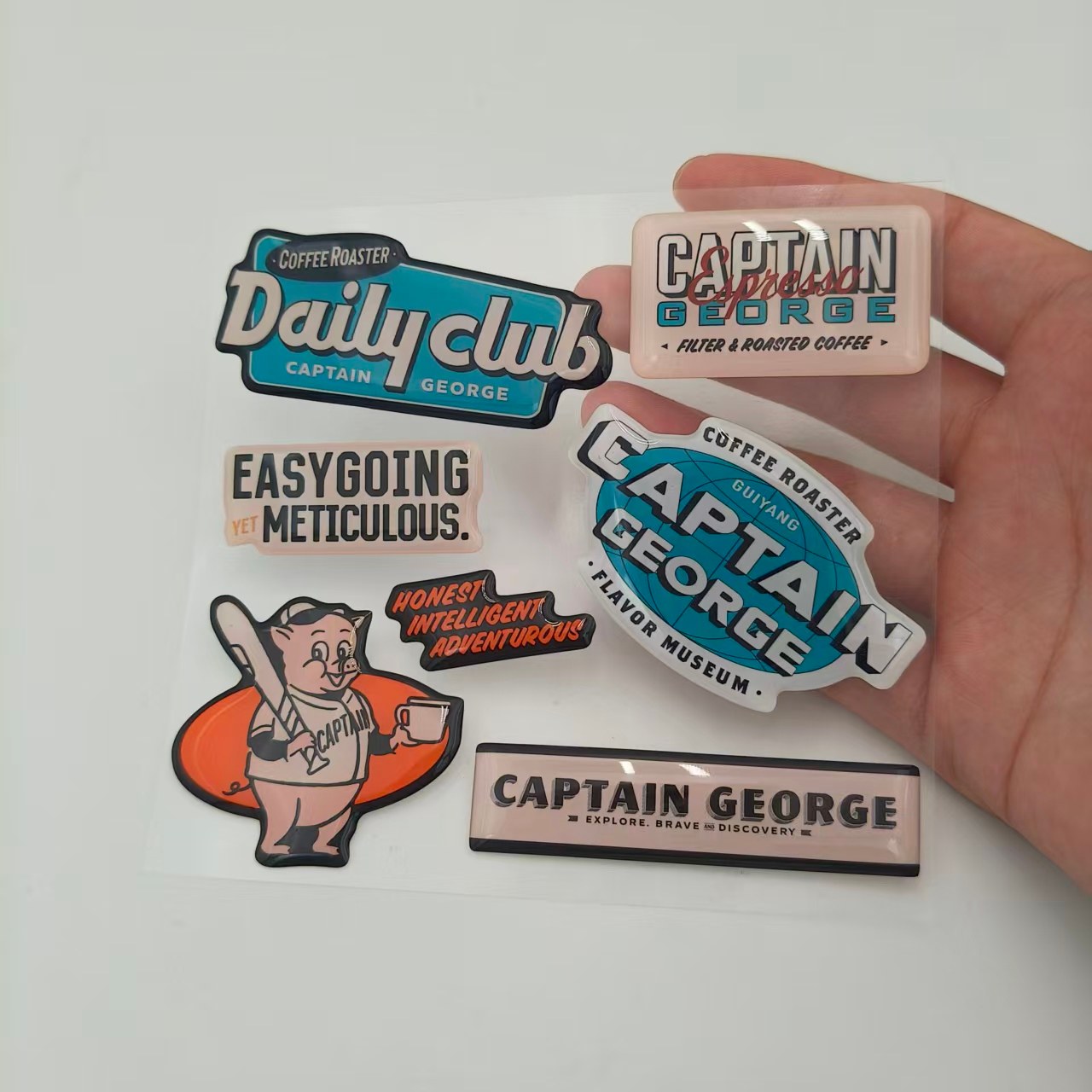 Dome epoxy-klistremerke, også kjent som personlig epoksydekal, er en type høyytelses limprodukt som kombinerer et tilpasset basislag. Dome epoxy-klistremerke vanligvis laget av materialer som PVC, PET eller papir. Den har et klart epoksyharpiksbelegg.