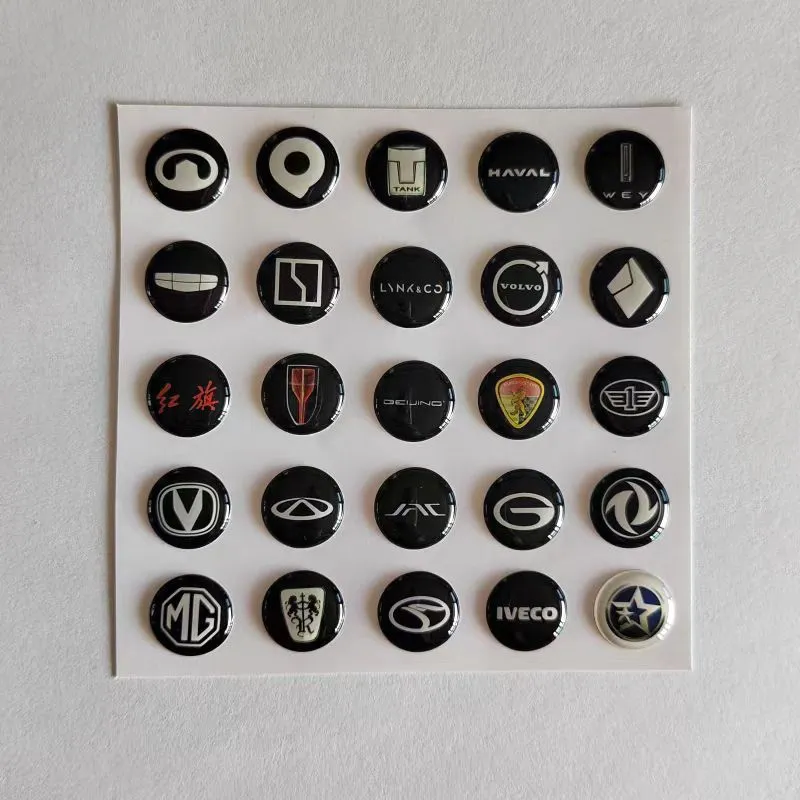 Epoxy Car Logo -etikettene produsert av JoJo Pack Company er svært nyskapende innen både håndverk og design. Dette belegget gir ikke bare klistremerkene en unik 3D -effekt, men forbedrer også den visuelle appellen til logoen.