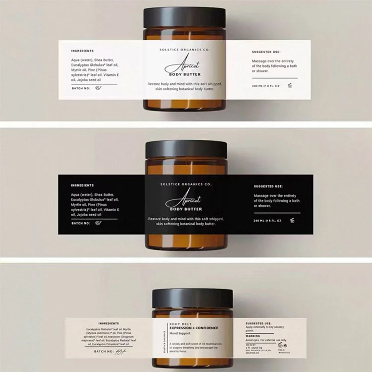 Face Cream -etiketten er en etikett som er spesielt designet for ansiktskrem og er en uunnværlig del av den. Etiketten med ansiktskrem er en effektiv måte for forbrukerne å lære om produktrelatert informasjon (for eksempel produktingredienser, bruksmetoder, produksjonsdato og holdbarhet, etc.), og det er også et middel for merkevarer å forbedre produktbildet og styrke merkevaregjenkjenningen. Etikettene til ansiktskremen produsert av JoJo Pack har ikke bare informasjon relatert til ansiktskremen, men er også laget av materialer av høy kvalitet for å sikre holdbarhet i forskjellige miljøer.