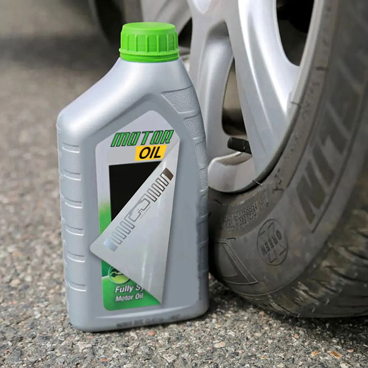 Etiketten inneholder vanligvis merkenavnet til motoroljen, type (som 10W-30, 5W-40, etc.), viskositetsgrad og annen viktig informasjon for å la brukere raskt identifisere og velge riktig produkt.