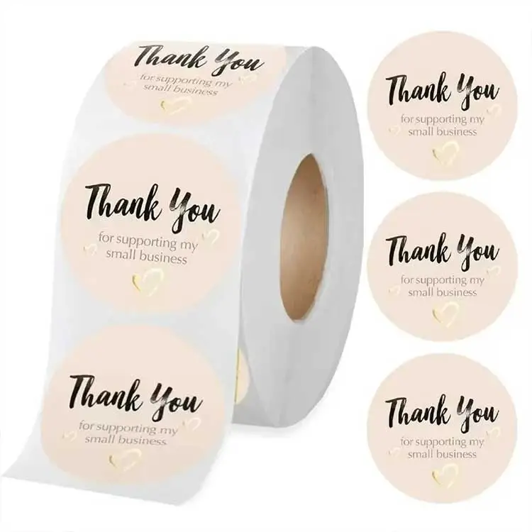 Størrelsene på takkeklistremerker støtter tilpasning, og formene deres inkluderer sirkulær, firkantet og spesialformet (hjerte, stjerne, tilpasset merkelogoform), som kan møte tilpasningsbehovene til forskjellige emballasjer.
