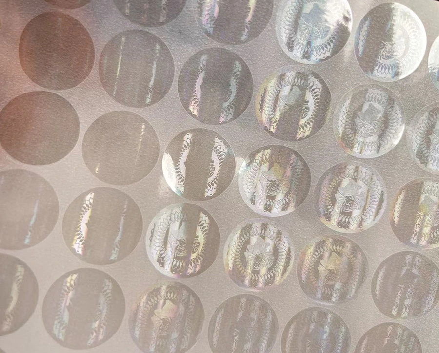 Holografisk mønster varmt presseoverføring Utskrift: avtrykkutstyret med en metallmal er forvarmet til en spesifikk temperatur og utsettes for nøyaktig kontrollert trykk. Deretter blir vinylmaterialet med det allerede trykte ordinære mønsteret nært metallmalen. Denne prosessen sikrer ikke bare at det holografiske mønsteret er godt festet til etiketten, men garanterer også den perfekte presentasjonen av mønsterets detaljer og tredimensjonalitet. Fra forskjellige vinkler kan den vise en unik strålende effekt som en regnbue.