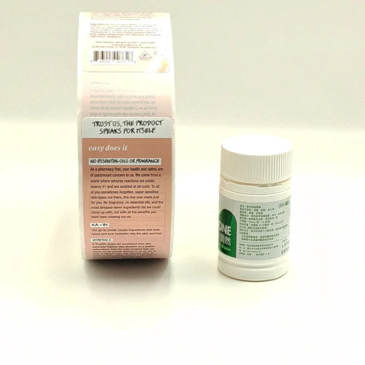 Vitaminetiketten til JoJo -pakken kan tilpasses forskjellige materialer og former. JoJo Pack gir forskjellige former for etiketter du kan velge mellom, for eksempel: Enkeltlagsetikett, multi -lags trykte, brosjyreetiketter. Du kan velge materialet og typen vitaminetikett selv, eller la oss gi personlig design for deg.
