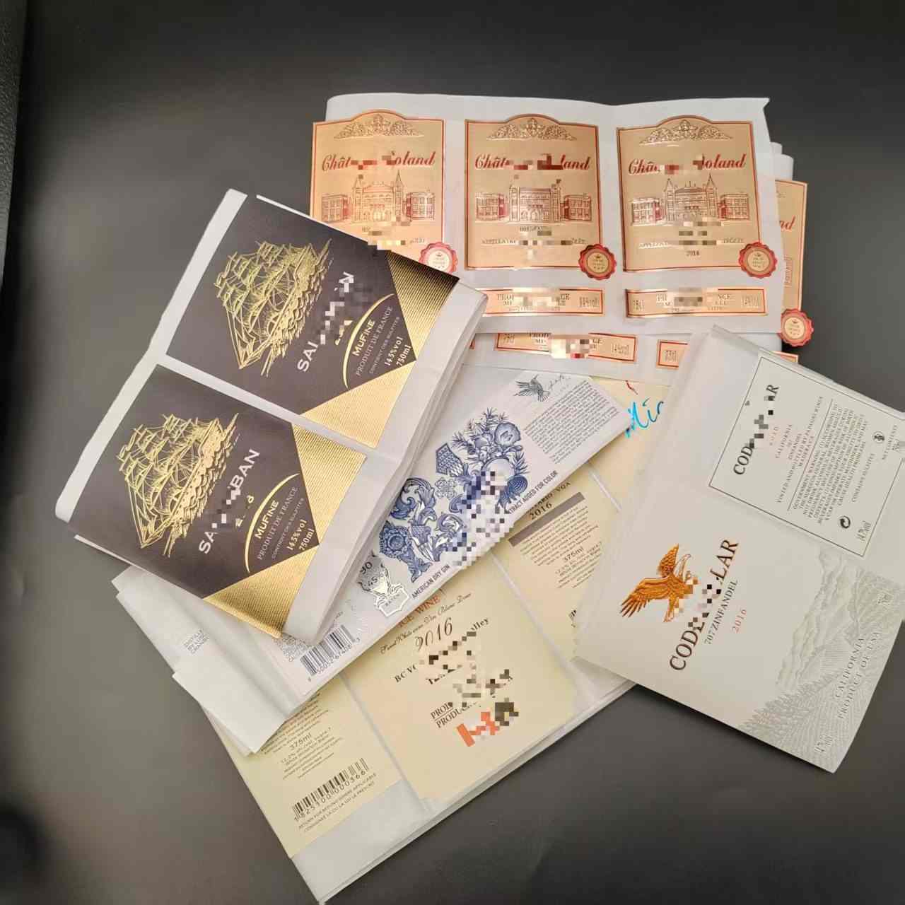 Tilpassede PVC vanntette forgylt vinetiketter støtter fleksibelt personlig design. De kan skreddersys til vingårdens merkestil og markedsposisjonering, enten det er komplekse mønstre, delikat tekst, unike former eller matching med matt, blank eller frostet PVC-overflatebehandling, de kan implementeres nøyaktig.