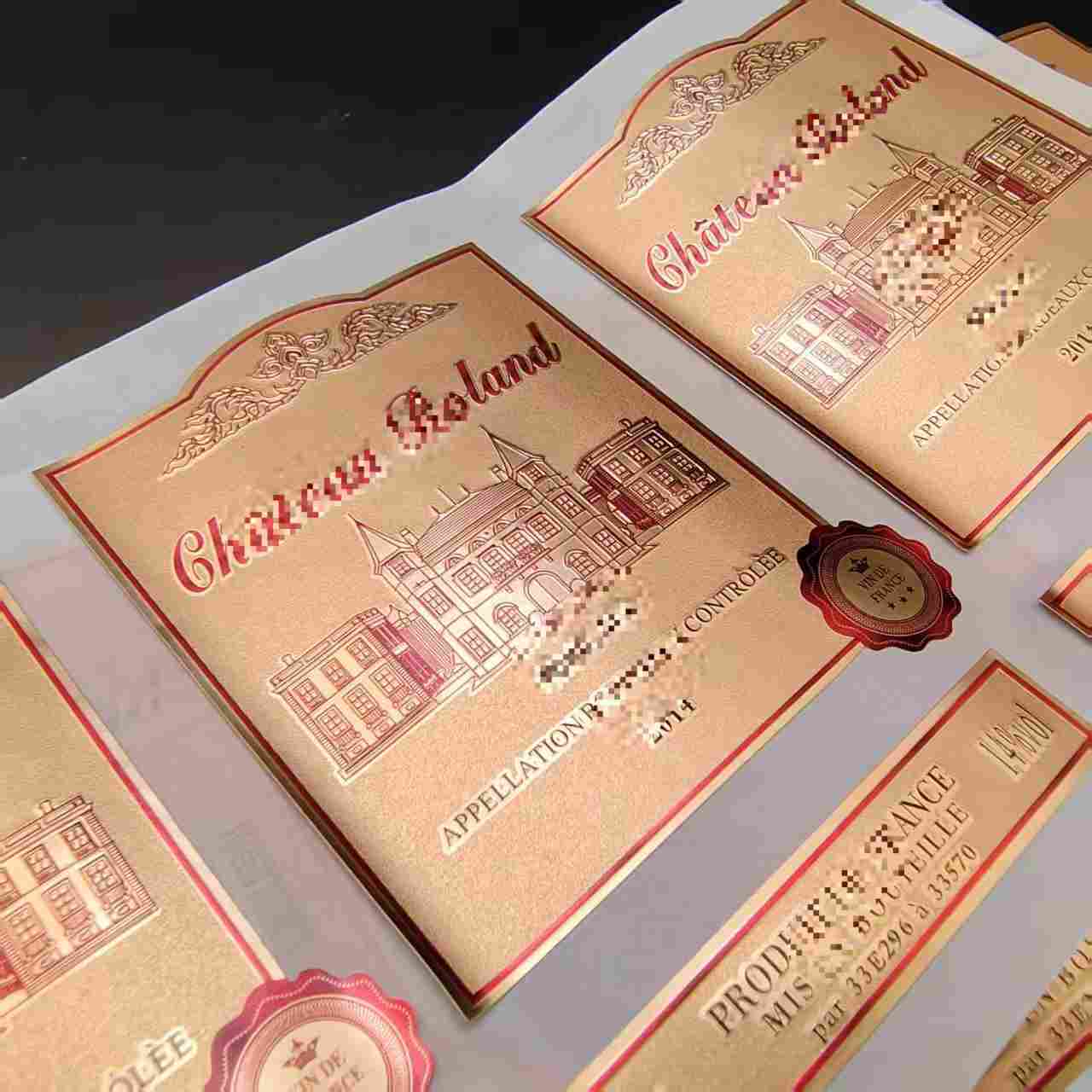 Integreringen av forgylt gir en eksklusiv og elegant tekstur til vinetiketten. Enten du bruker gull, sølv eller andre metalliske forgyllingsfarger, kan det skape en slående kontrast med etikettens designelementer (som merkelogoer, mønstre eller tekst), noe som gjør at etiketten skiller seg ut i butikkhyllene.